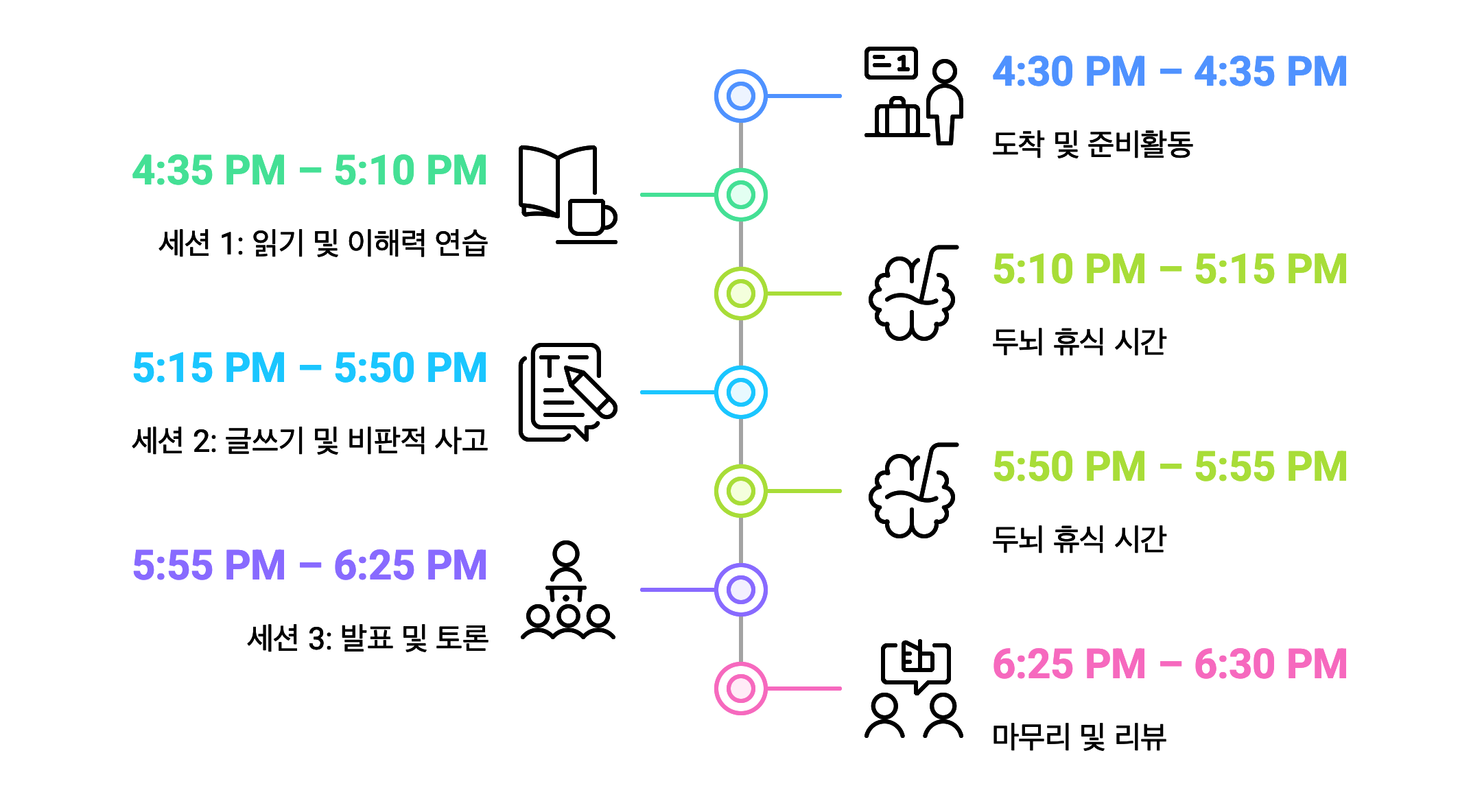 - Time: 화 and 목, 4:30 PM – 6:30 PM (주 4시간)